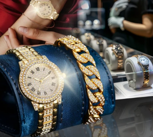 50% DESCUENTO!SET DE RELOJ Y BRAZALETE CON CRISTALES