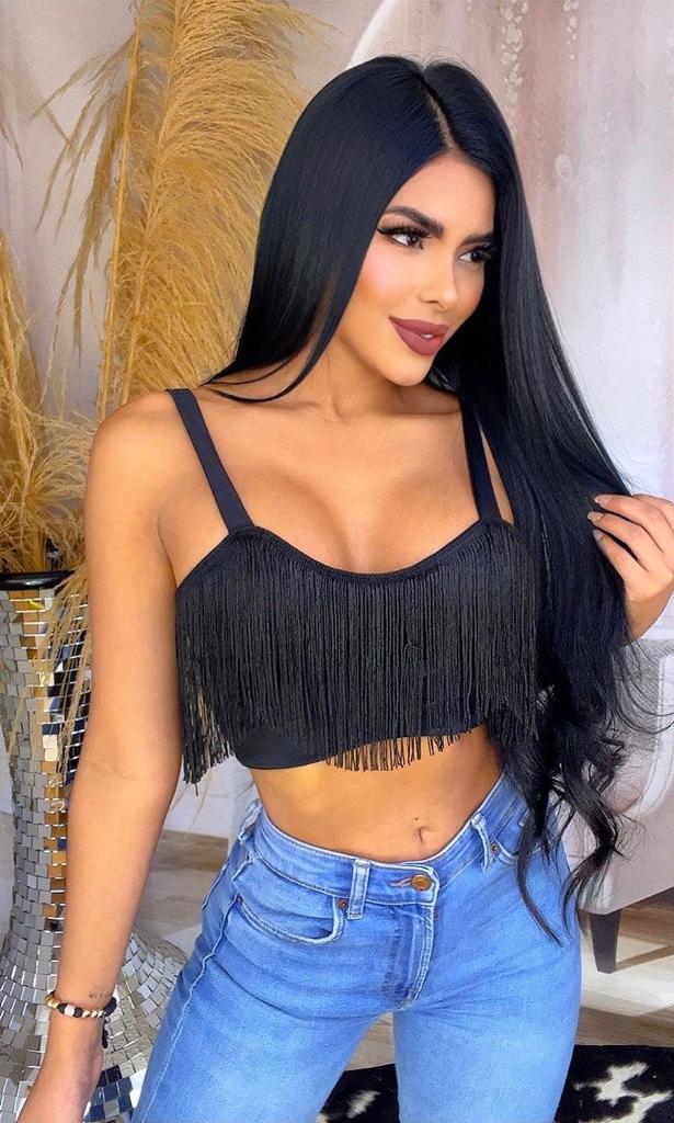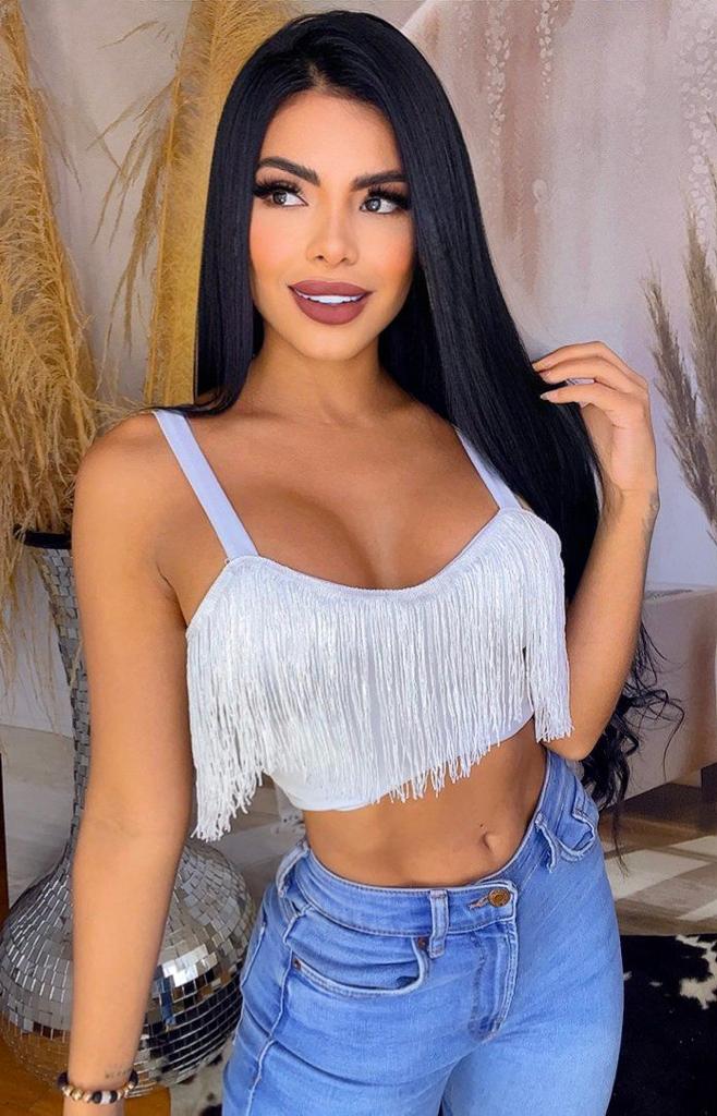 Hermoso croptop estilo ombliguera con detalles de flecos, diseñado en talla única que se ajusta hasta un busto de talla 36