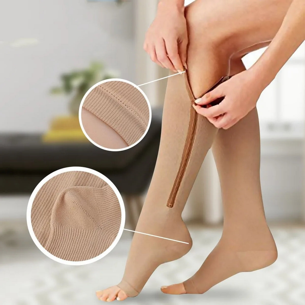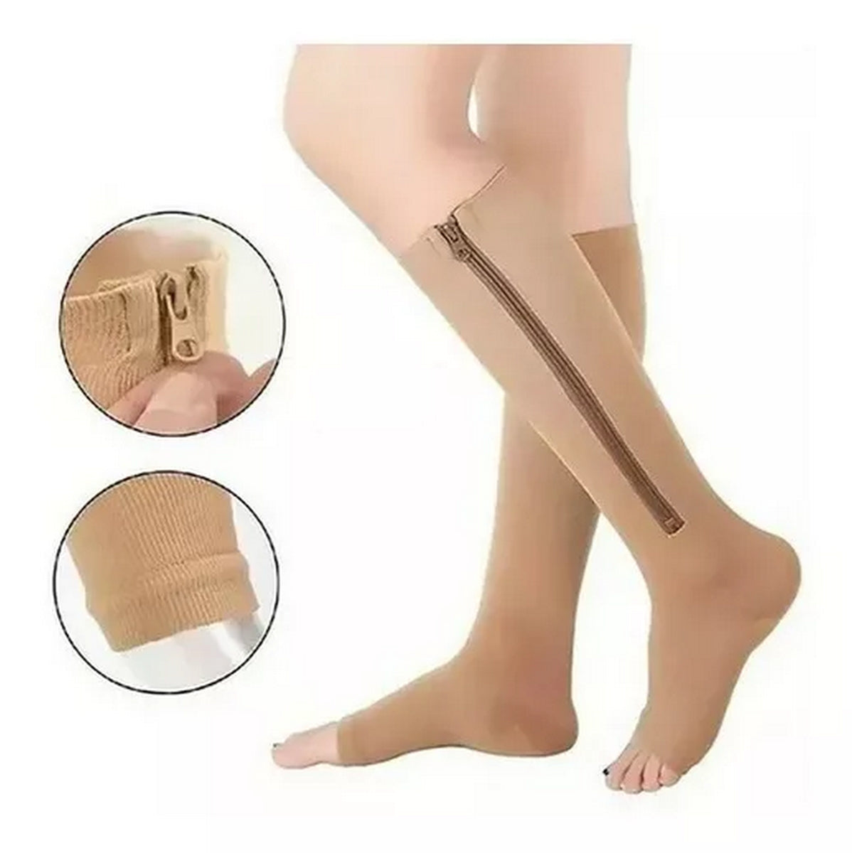 Los Calcetines de Compresión Anti Várices con cremallera están diseñados para mejorar la circulación sanguínea, reducir la inflamación y aliviar el dolor y la fatiga en las piernas.