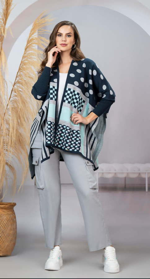 ✅Ruana Tipo Chal Con Diseño Geométrico.